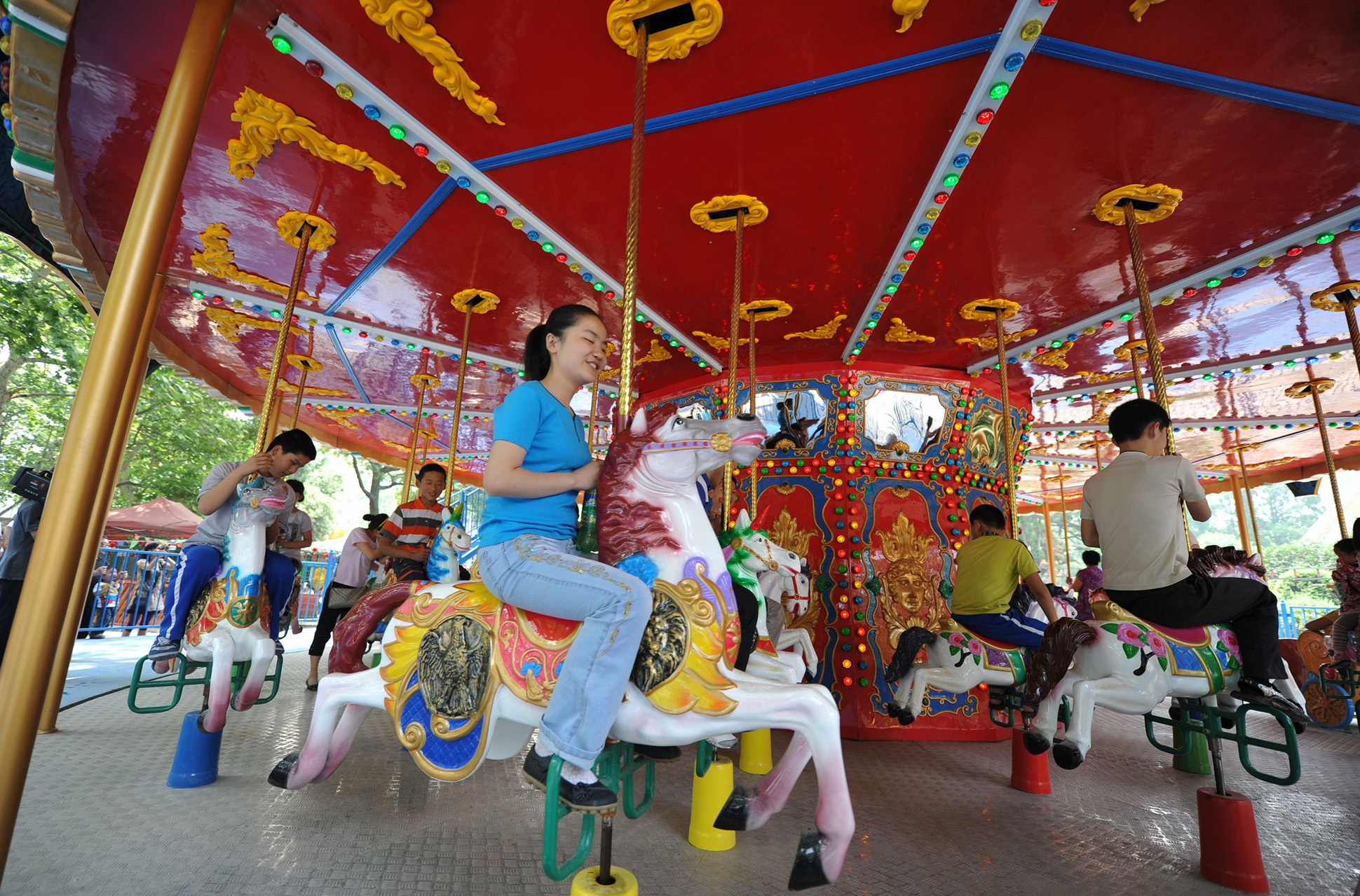 ▲2010年5月31日,王香君(前)和她的小伙伴在合肥市逍遥津公园第一次乘坐旋转木马。