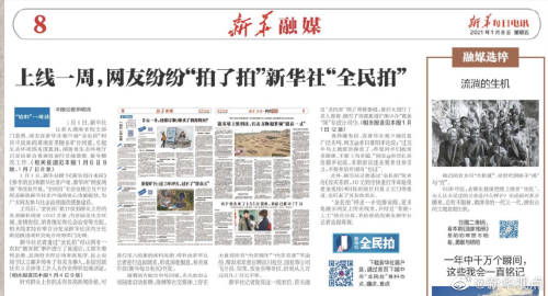 1月1日,新华社旗下《新华每日电讯》《参考消息》和新华社客户端、新华网“两报两端”等改版升级,“全民拍”社会治理交互平台则是新版新华社客户端的核心功能板块,为广大网友参与社会治理提供便捷途径。