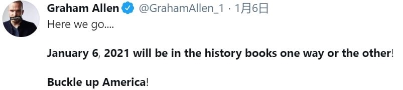 “终于......2021年1月6日,这一天将是写入史书的一天!或此,或彼。系好安全带,美国!”