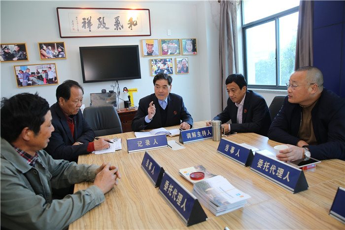 ↑浙江省诸暨市枫桥镇退役军人服务站的调解主持人帮助退役军人妥善解决问题。新华社发(任光法 摄)
