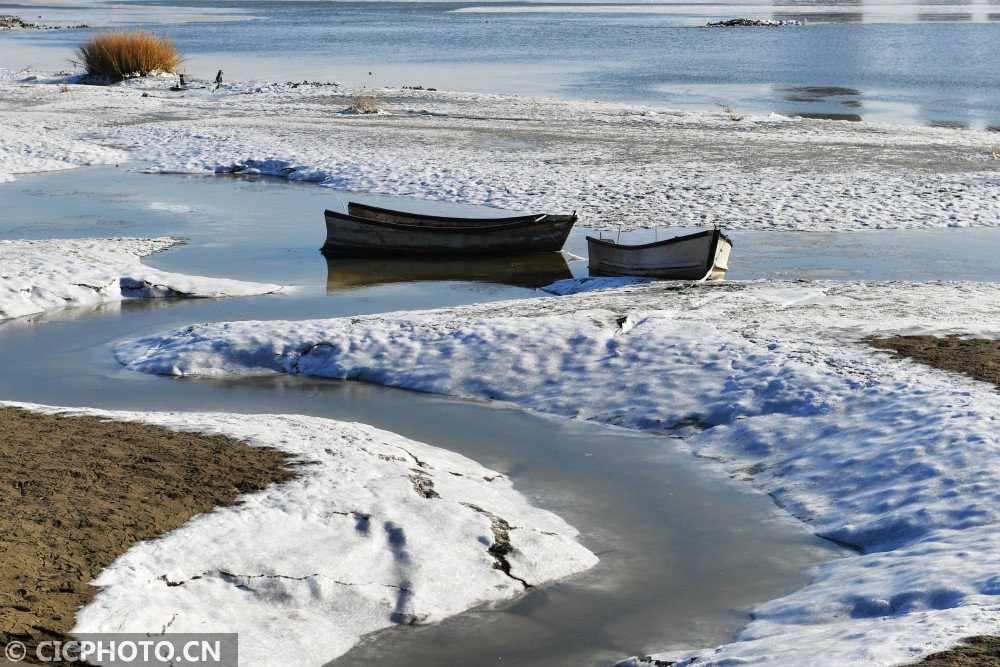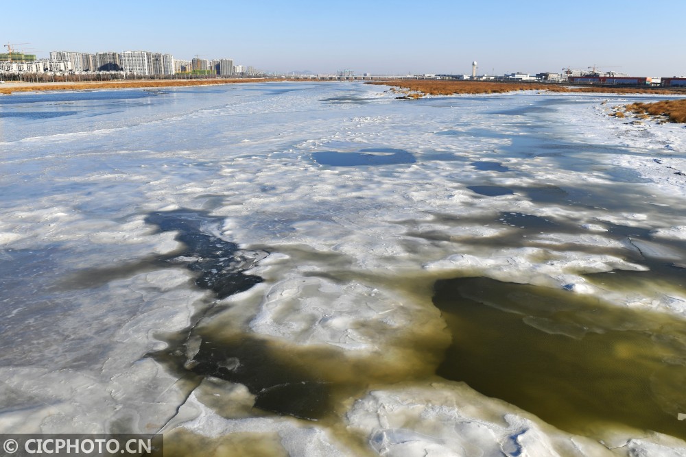 ↑这是在山东省青岛市两河入海口拍摄的封冻水面。CICPHOTO/王海滨 摄