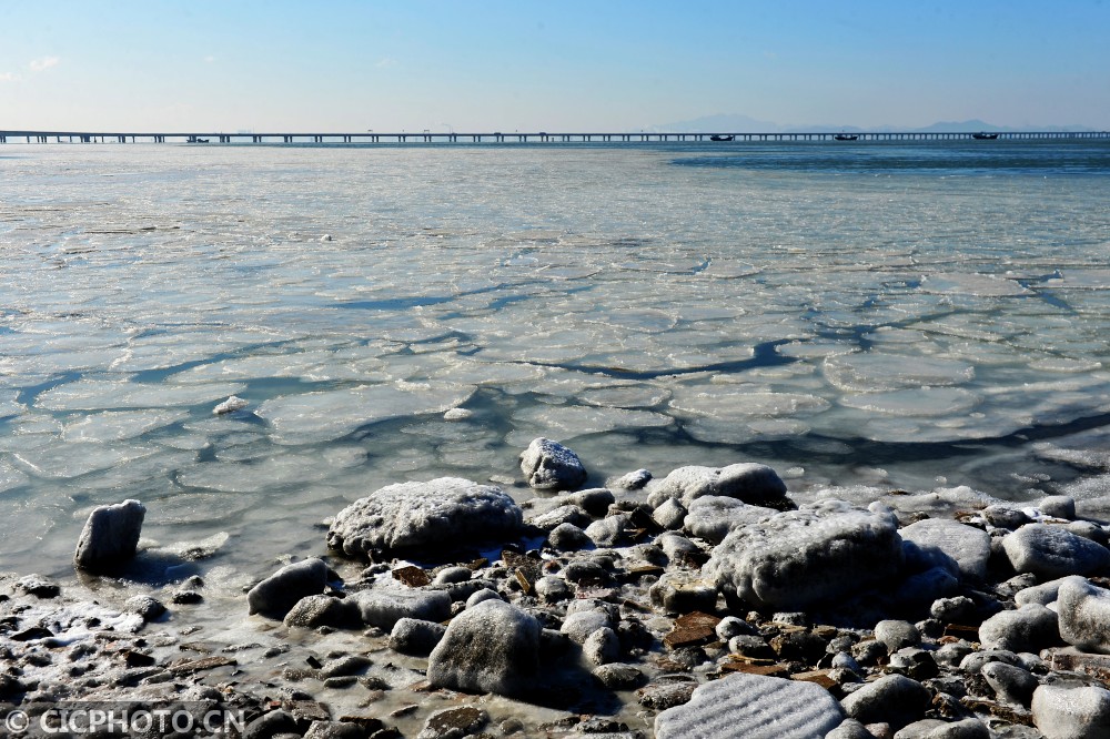 ↑这是在山东省青岛市胶州湾跨海大桥红岛段拍摄的冰海。CICPHOTO/王海滨 摄