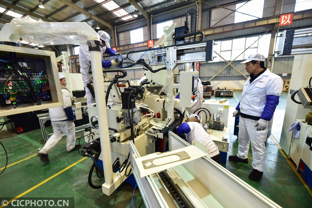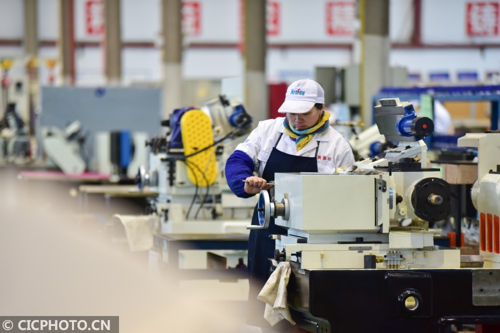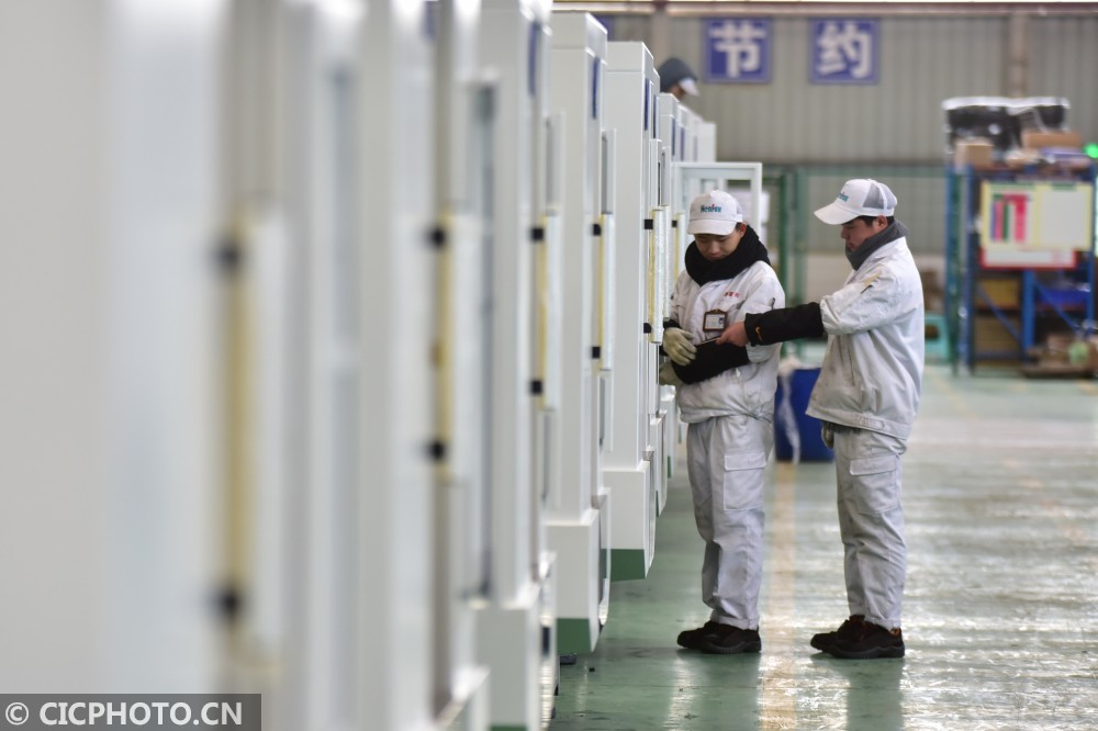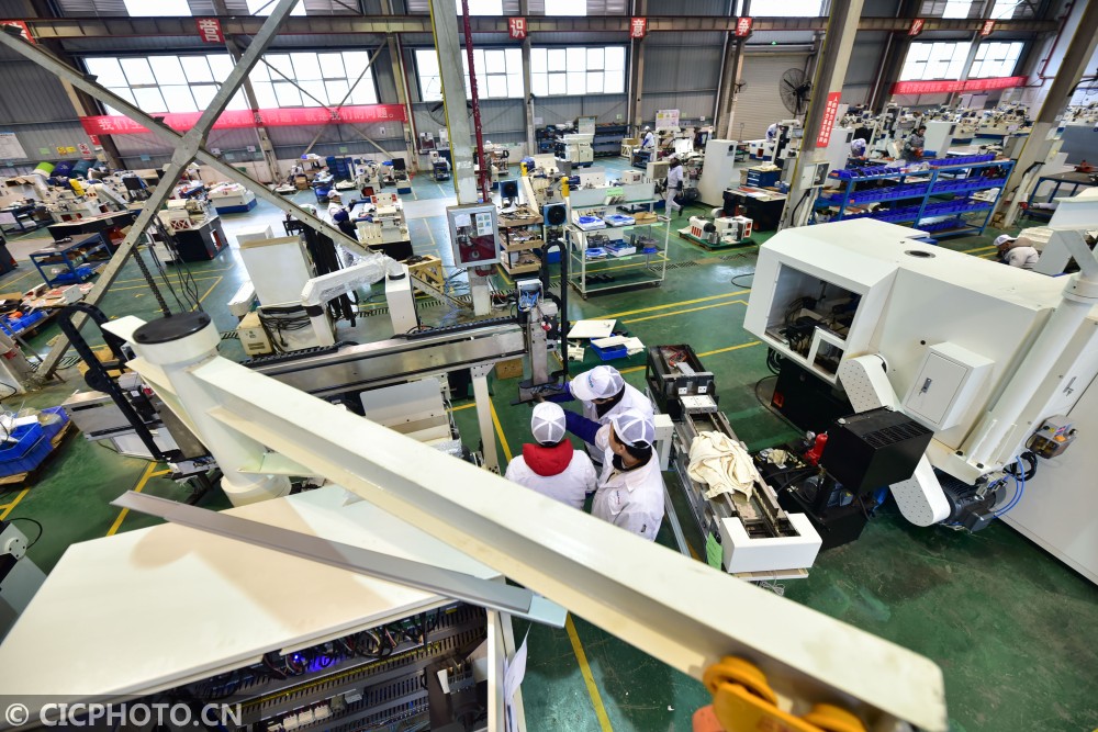 ↑2021年1月7日,工人在贵州省黔东南苗族侗族自治州丹寨县金钟经济开发区一企业的装配车间忙碌。CICPHOTO/杨武魁 摄