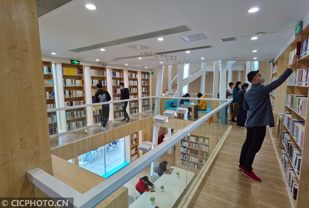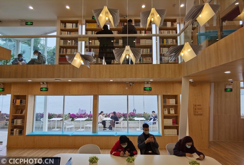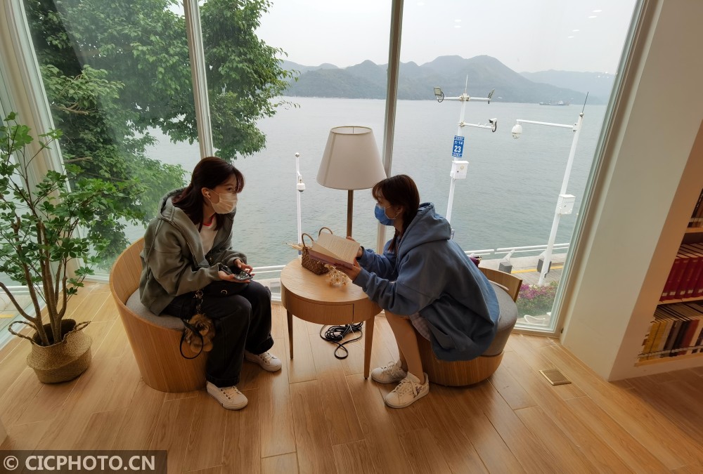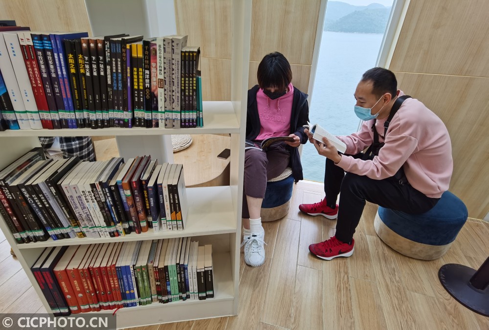 以上图片:2021年1月7日,读者在广东省深圳市盐田区海滨栈道旁的“灯塔图书馆”看书。CICPHOTO/喻湘泉 摄