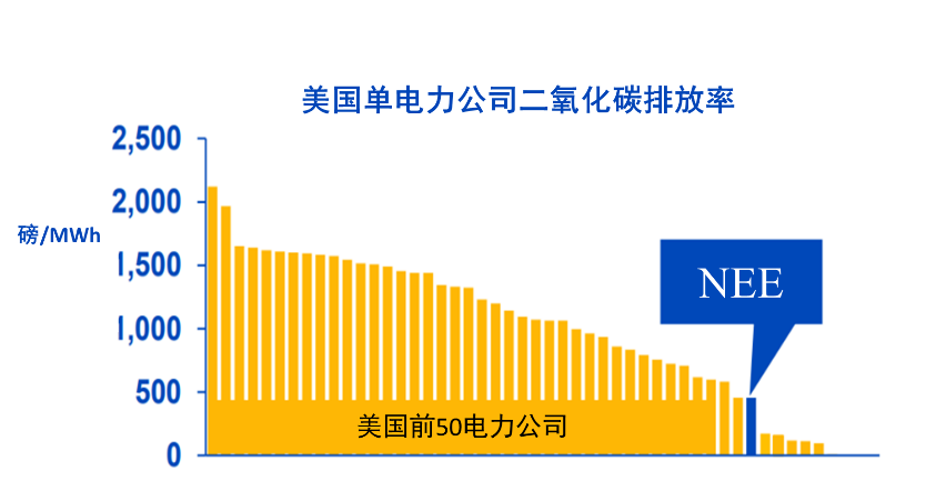 ▲图表:NEE在全美Top50电力公司中CO2排放率排名。数据来源:NEE August 2020 Investor Presentation。