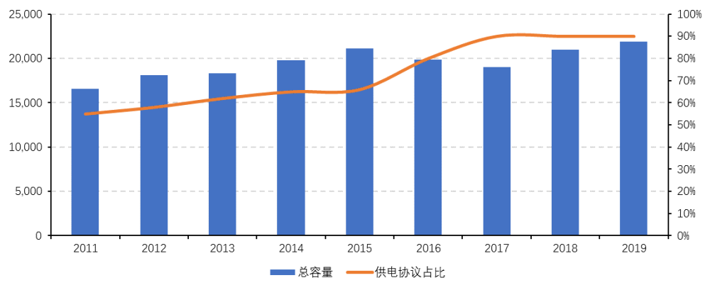 ▲图表:NEER2011-2019年供电协议比例变化。数据来源:NEE官网,东吴证券。