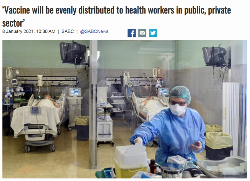 当地时间1月8日,据南非国家电视台报道,南非卫生部长兹韦利·穆凯兹向议会表示,50万支疫苗将于1月和2月运抵该国,首先供给医务人员。
