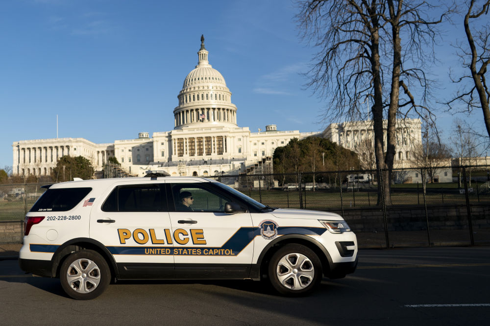 1月7日,在美国华盛顿,一辆警车从国会大厦前驶过。(新华社记者刘杰摄)
