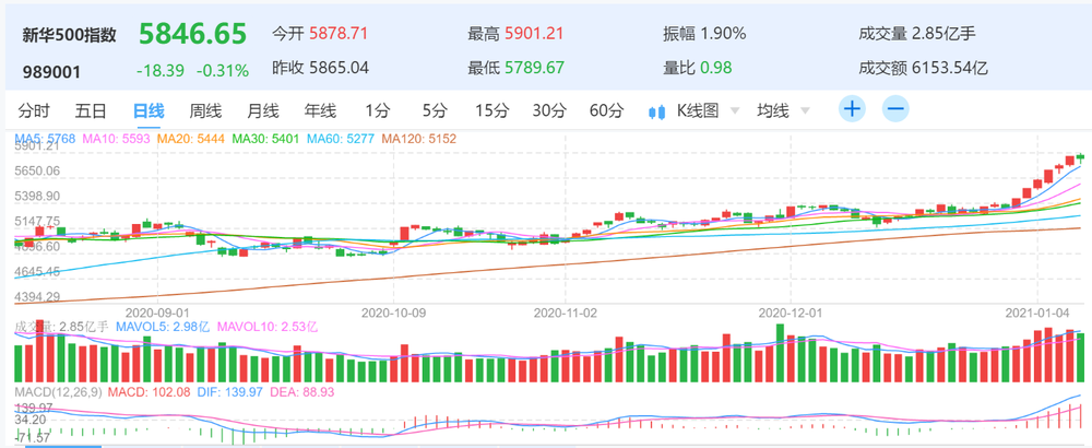 图为新华500指数(989001)日K线图