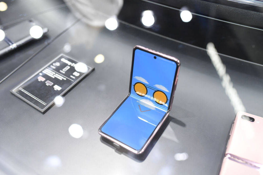2020年11月7日在消费品展区三星展台拍摄的折叠屏手机。三星已连续三年参加进博会。(新华社记者李任滋摄)