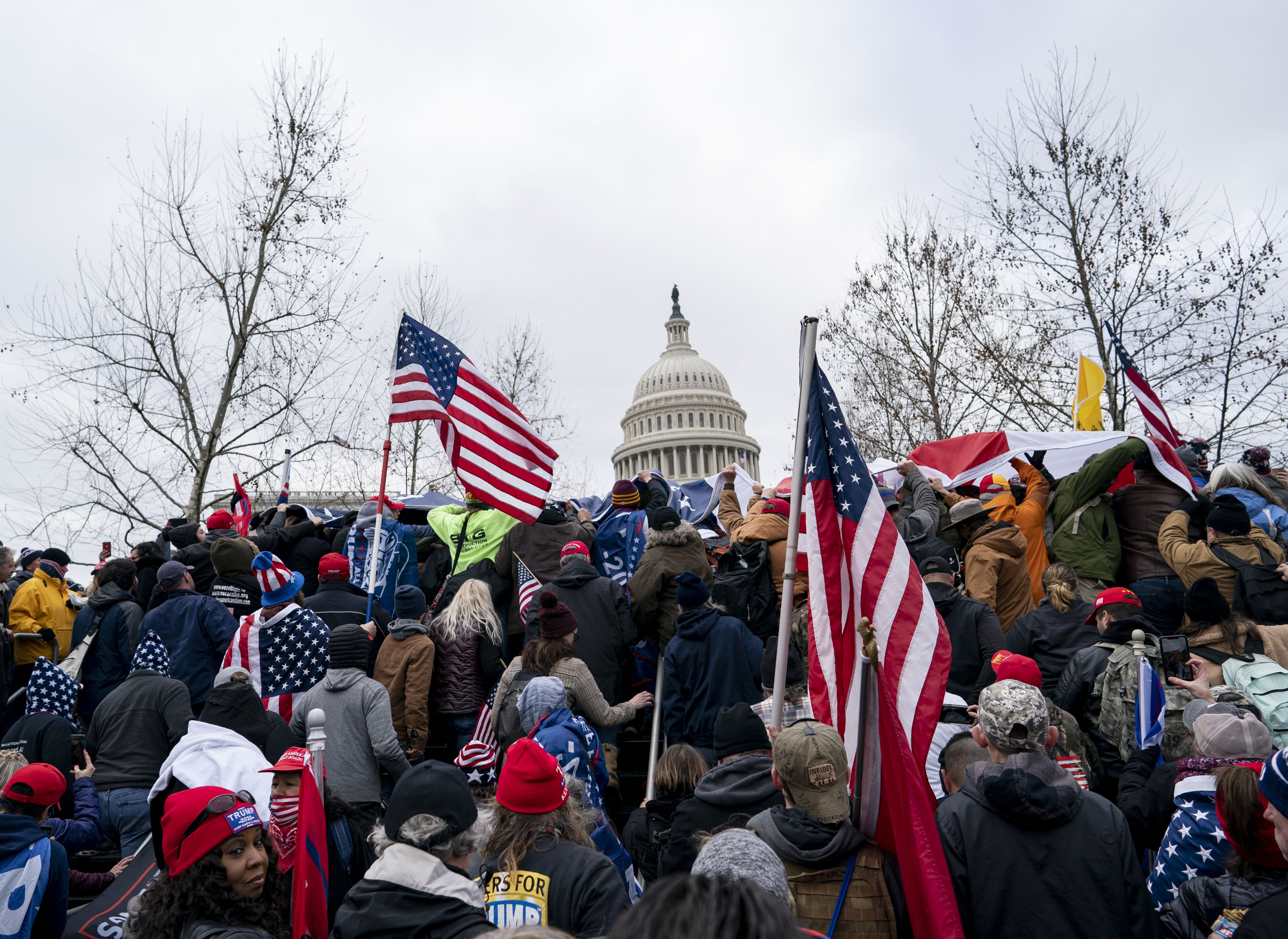 1月6日,在美国首都华盛顿,美国总统的支持者在国会外举行游行示威活动。新华社记者 刘杰 摄