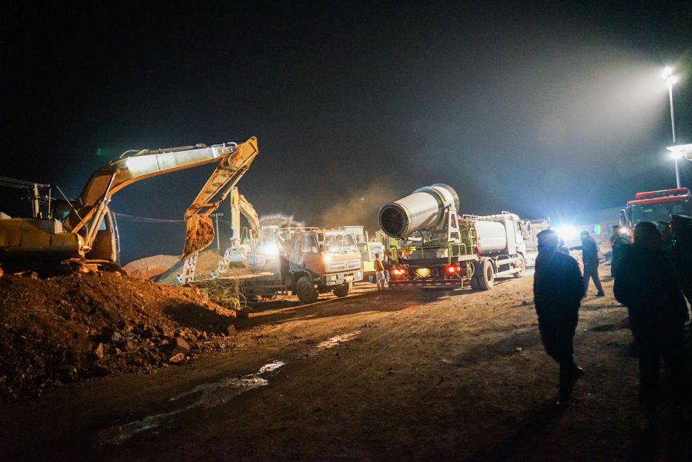 1月6日晚,在湖南省茶陵县洣江街道诸睦村和建矿业有限公司,茶陵县多部门工作人员在抓紧转移露天堆放的铁矿石。新华社发