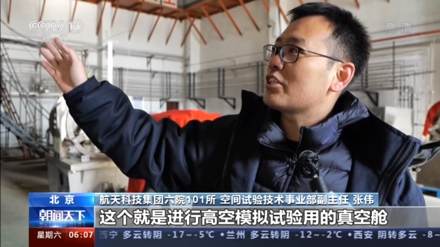 航天科技集团六院101所 空间试验技术事业部副主任 张伟:进行高空模拟试验用的真空舱,单舱就是200立方的一个容积。我们做嫦娥五号试验的时候,是两个大舱对接,至少是400立方的一个容积。模拟发动机在太空工作的环境。包括模拟发动机变推力的一个过程,包括多次启动这样的一个过程,经历了10多台的这样的一个可靠性验证之后才转正样。