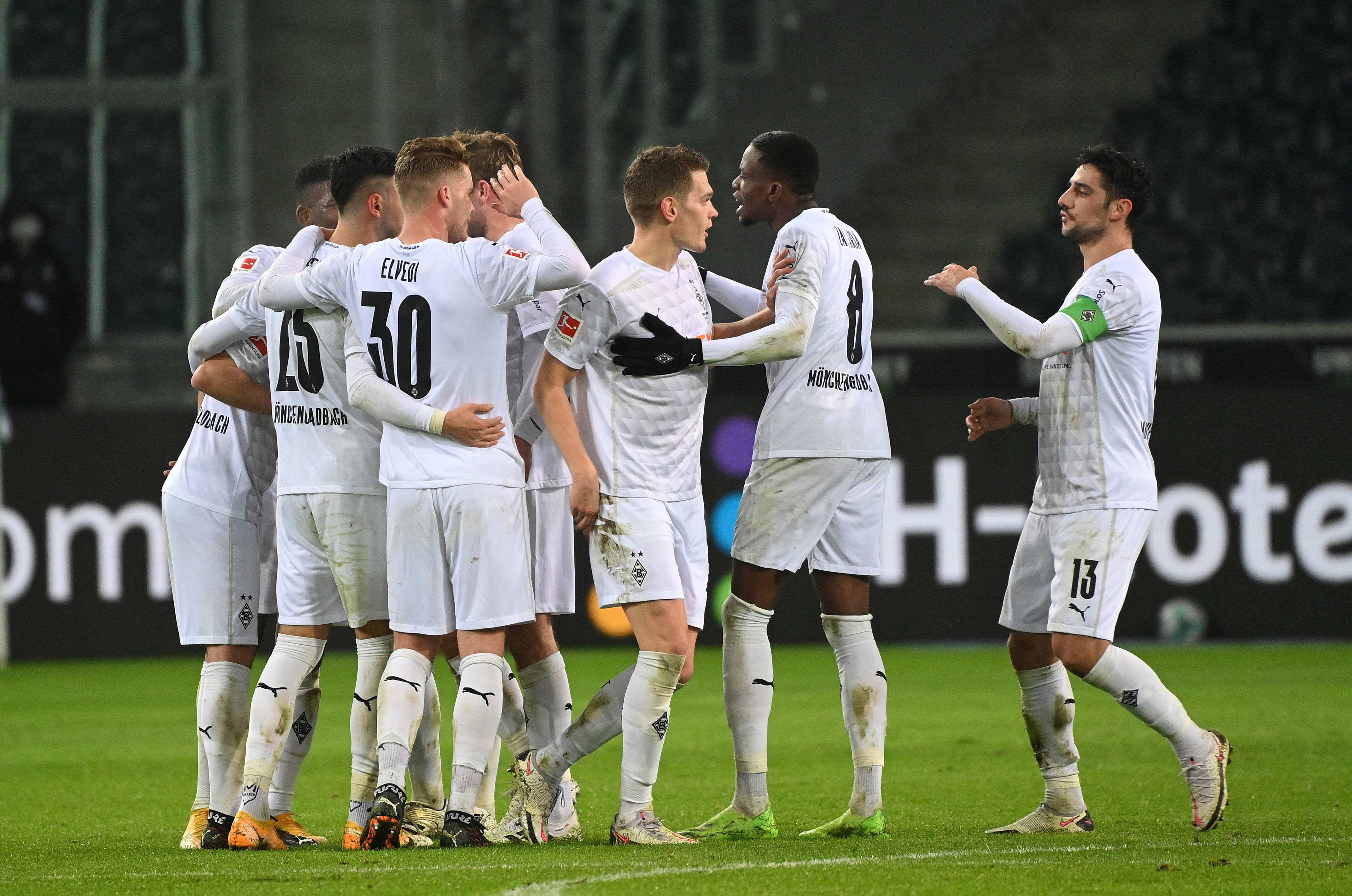 图为门兴格拉德巴赫队球员在进球后庆祝