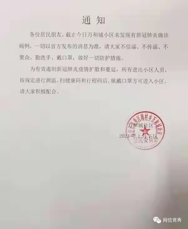 万和城居委会也已积极张贴通知进行辟谣,并提醒大家按规定进行测温、扫健康码和行程码并佩戴好口罩。