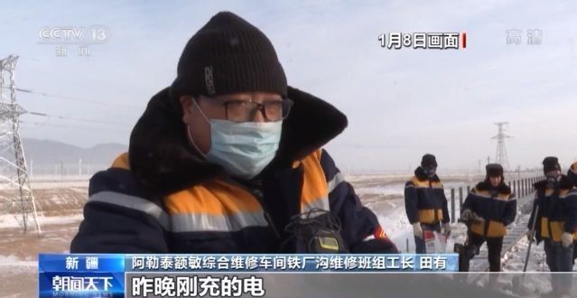 阿勒泰额敏综合维修车间铁厂沟维修班组工长 田有:太冷了,昨晚刚充的电,这地方你看着电量那啥的(有电),一到外面天冷,就冻得电池没有电,只能揣在怀里面保持一定的温度,才能保持一天的正常通话。