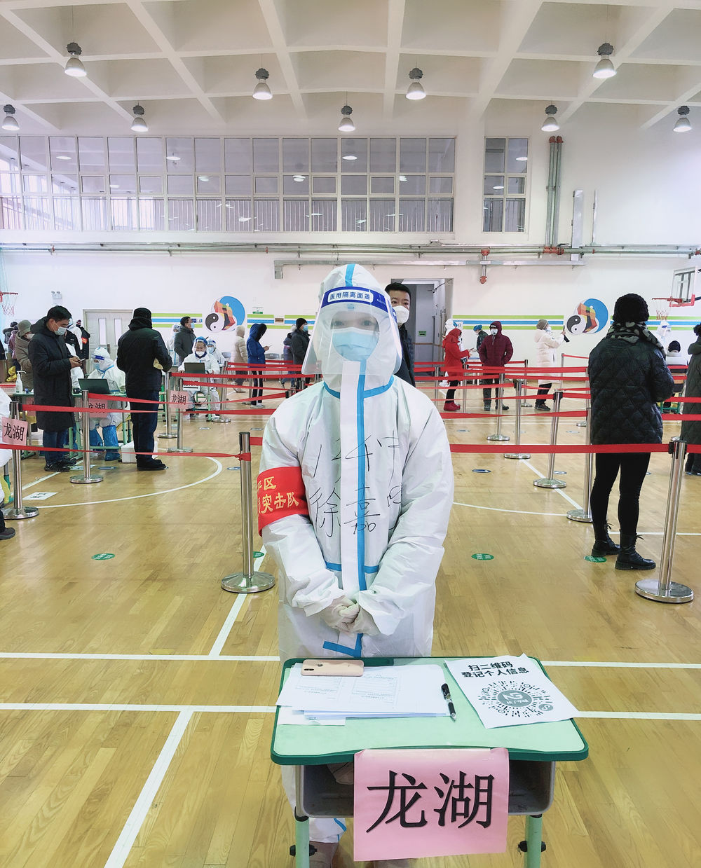 图为沈阳市第134中学教师徐嘉咛在核酸检测现场(照片由学校提供)