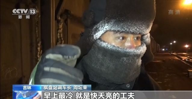 棋盘站调车长 周坛来:早上最冷,就是快亮天的工夫,眼睛一闭,啪就粘上了,(眼睫毛)有霜。