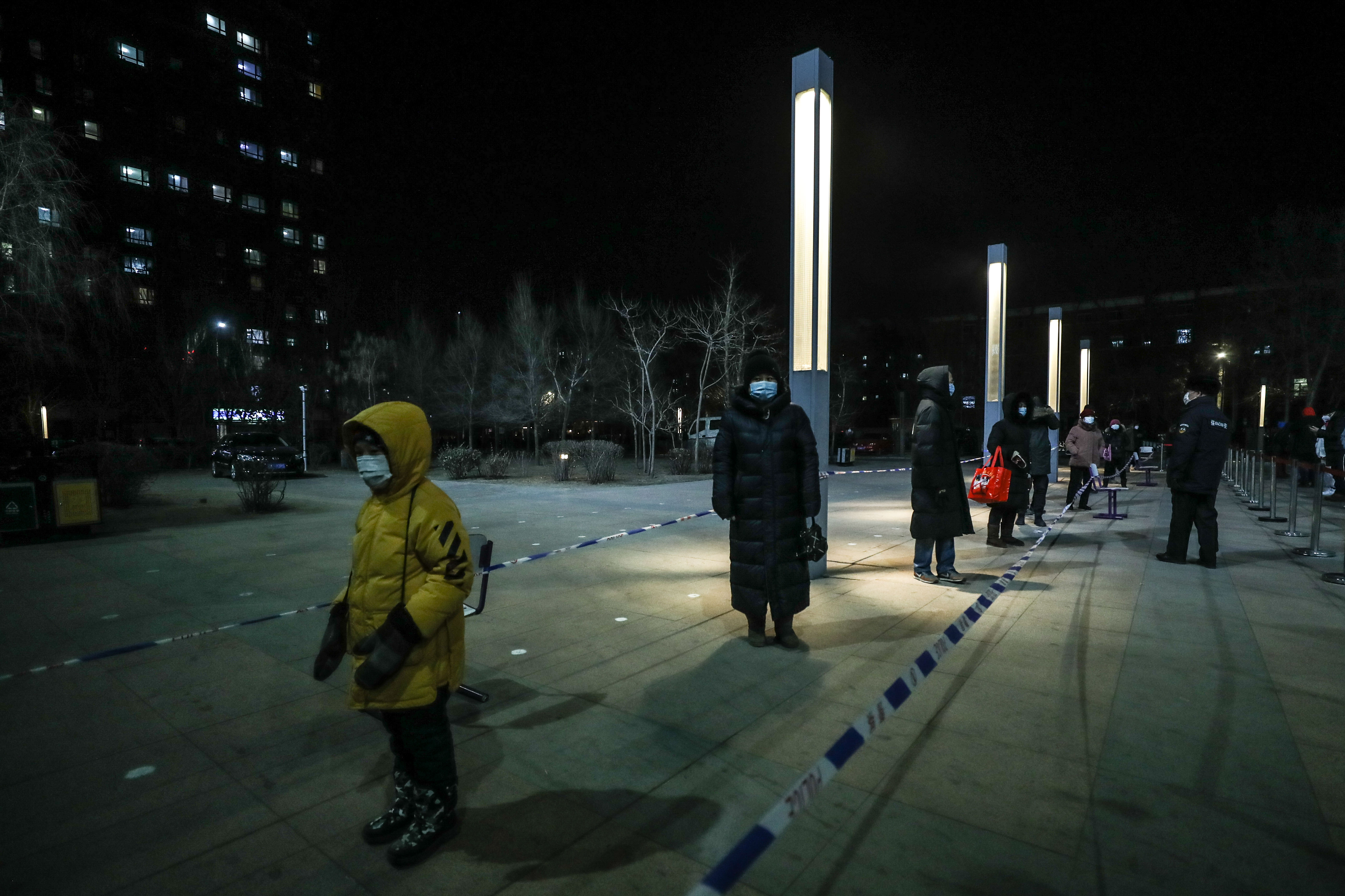 4日,市民在沈阳市铁西区重工街道一处核酸采样点外排队准备接受核酸采样。(新华社记者潘昱龙摄)