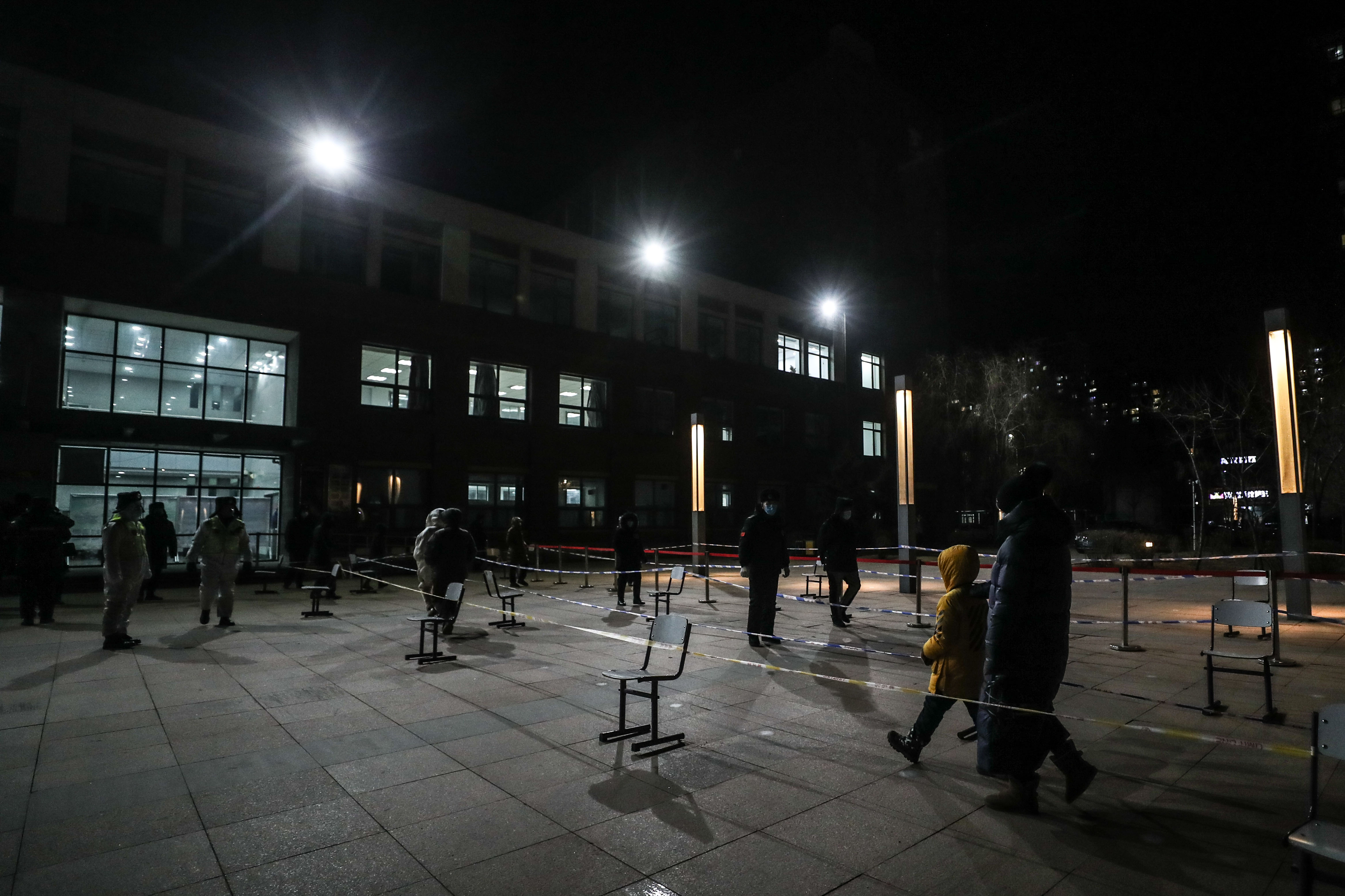 1月4日晚,市民在沈阳市铁西区重工街道省安社区核酸采样点外排队准备接受核酸采样(新华社记者潘昱龙摄)