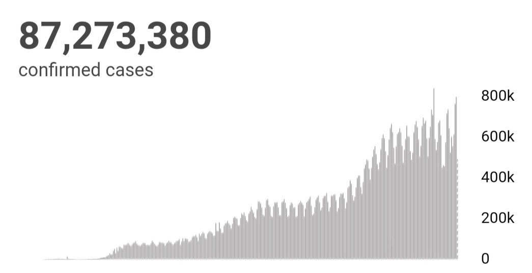 △全球新冠肺炎累计确诊数(图片来源:世卫组织)