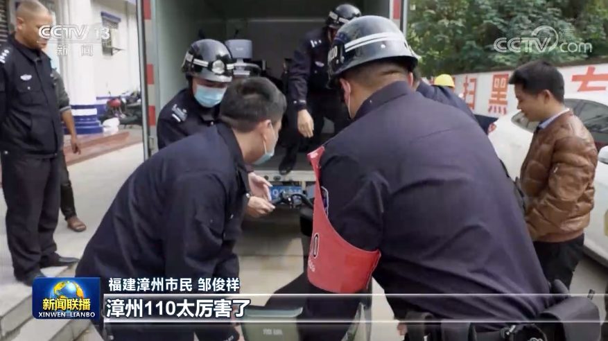 正在处警的是福建省“漳州110”,在接到市民电动自行车被盗的报案后,“漳州110”通过多警种合成作战,不到3小时,就精准锁定了作案用的货车,从车中查获了被盗的四辆电动自行车。