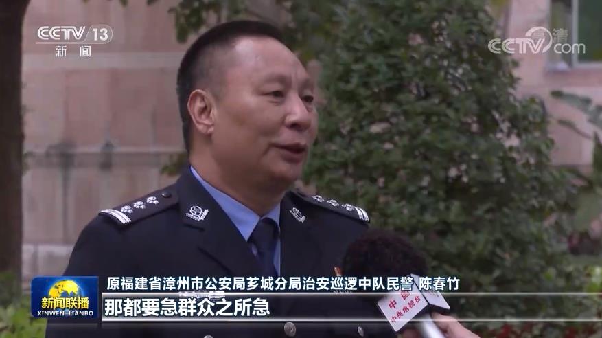 原福建省漳州市公安局芗城分局治安巡逻中队民警 陈春竹:作为公安机关,那都要急群众之所急。把群众的这些事情,先揽过来,然后能做的先做,不能做的再流通。