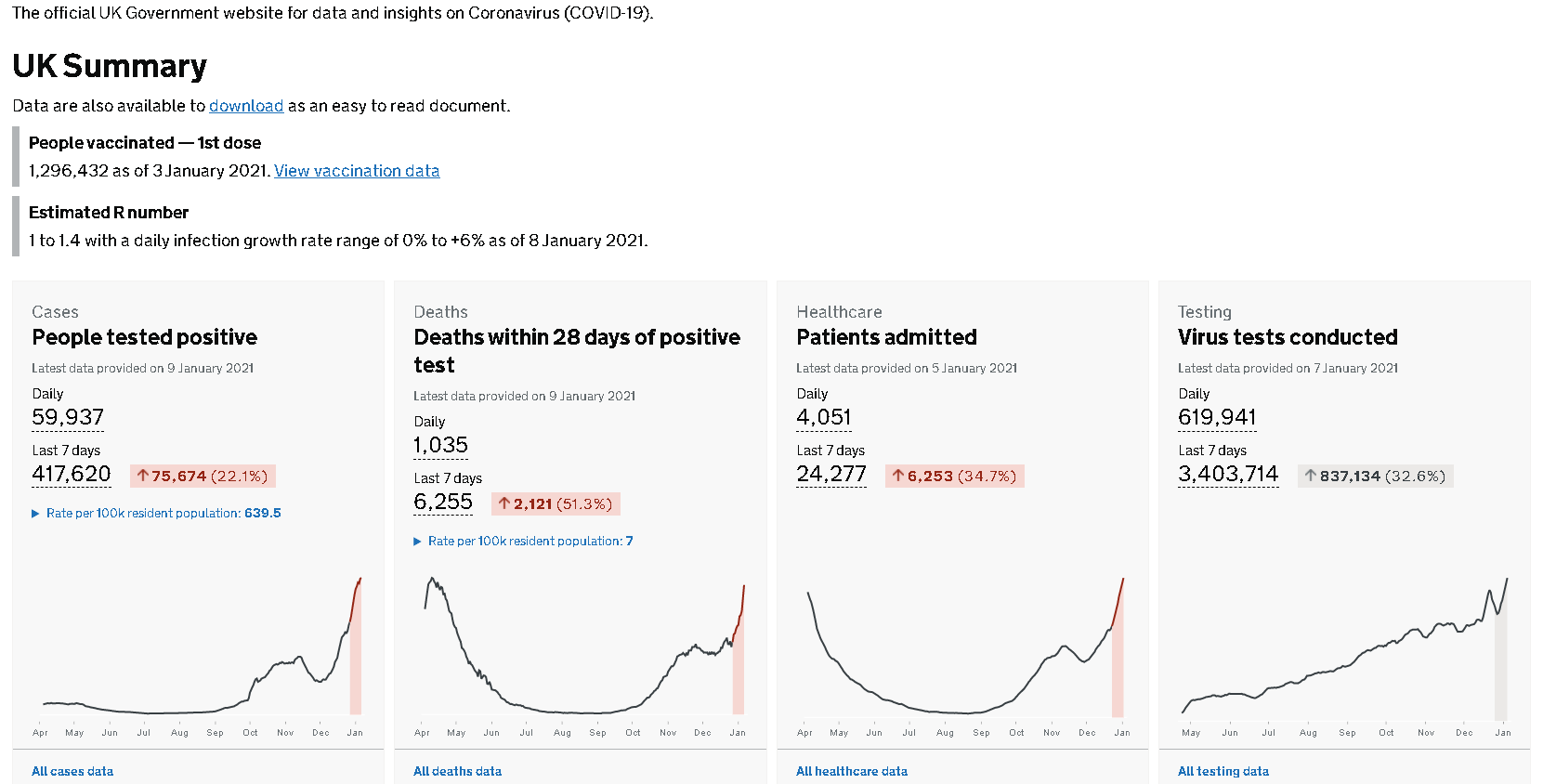 伦敦当地时间1月9日,英国卫生和社会保障部公布最新数据显示,过去24小时英国新增新冠肺炎确诊病例59937例,累计确诊3017409例;新增死亡1035例,累计死亡已超过8万,达到80868例。