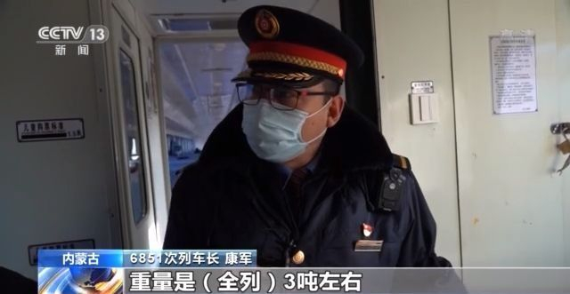 6851次列车长 康军:每袋煤重量是80斤,每节车厢有这样的煤袋(数)10袋,重量是(全列)3吨左右。