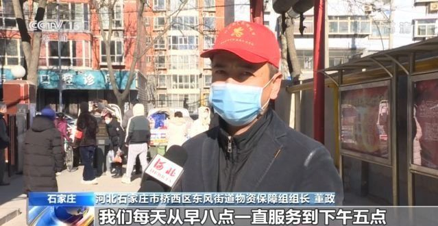 河北石家庄市桥西区东风街道物资保障组组长 董政:我们每天从早八点一直服务到到下午五点,不间断地按社区网格群进行公布,居民在充裕的时间内准备有序排队进行采购。