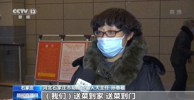 河北石家庄市裕翔街道人大主任 孙惠敏:群众说买菜不方便,我们就立刻进行了现场接龙,(我们)送菜到家、送菜到门。我们送的时候戴上包装手套。