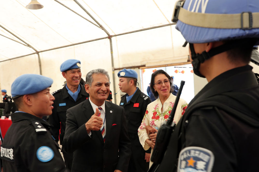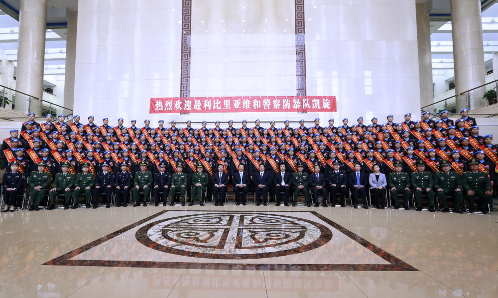 接见中国第五支驻利比里亚维和警察防暴队代表一行,
