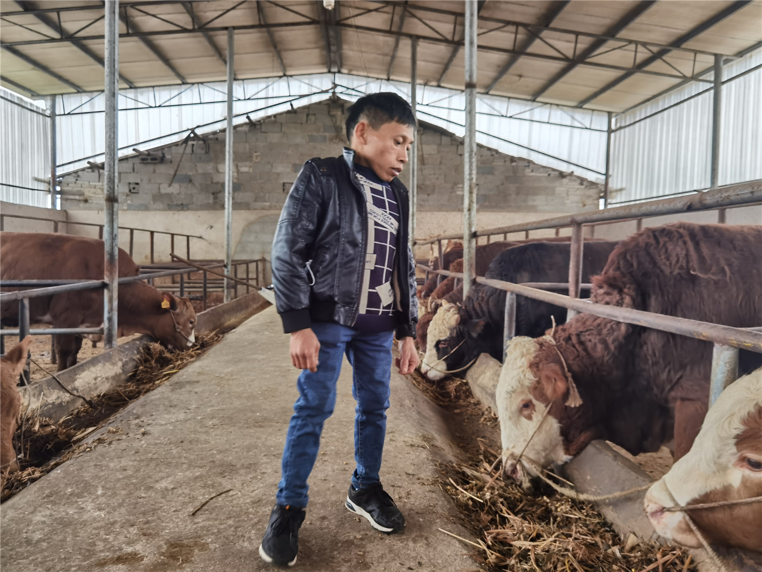 36岁的王华银是福泉市牛场镇双龙村村民,他是“农村金融致富学校”第一批学员之一。学习养牛技术后,他萌生了自主创业的想法。经过多次调查评估,福泉农商行向其发放贷款260余万元,他现在开了一家专业养殖场,养殖了1000余头生猪和60头肉牛。