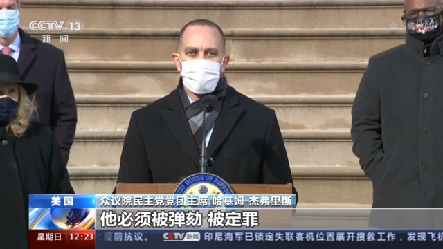 众议院民主党党团主席 哈基姆·杰弗里斯:唐纳德·特朗普必须马上下台,他必须被弹劾、被定罪,被扔出宾夕法尼亚大道1600号(白宫)。
