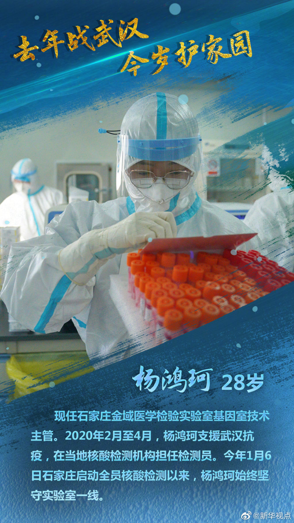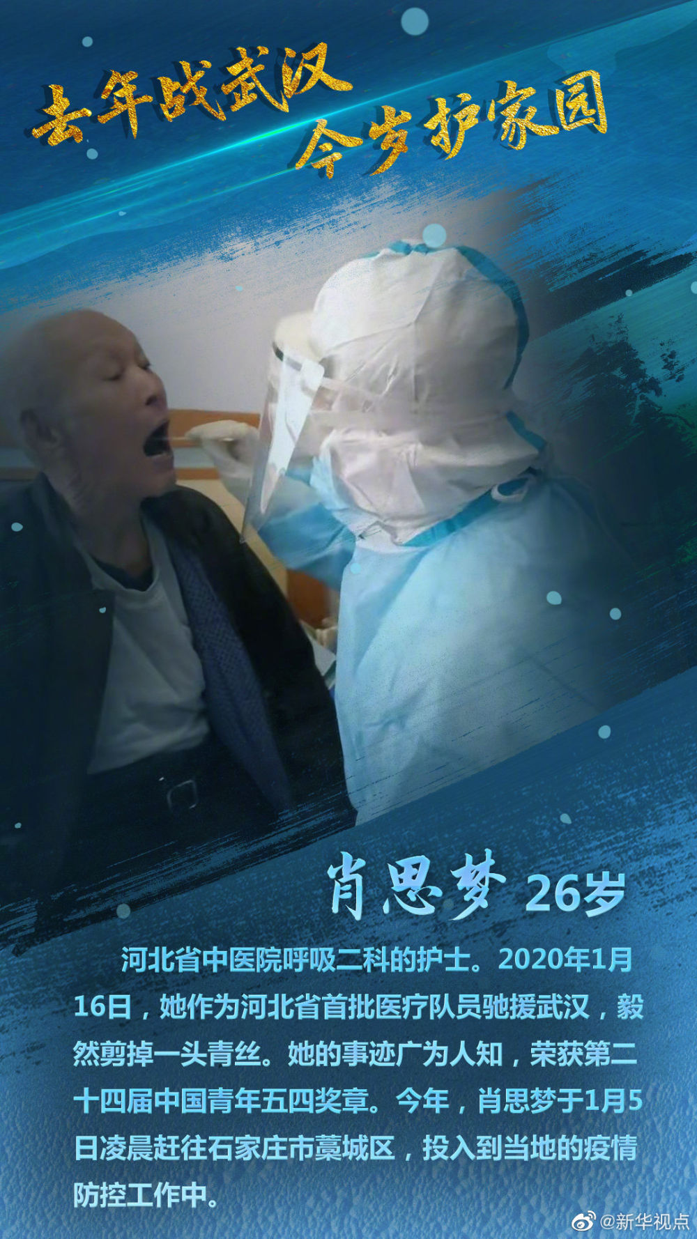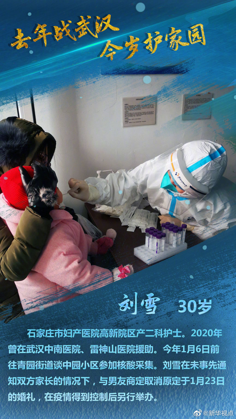 【去年战武汉,今岁护家园】他们是95后年轻女孩、少见的产科男护士、二胎妈妈、剃发“女汉子”、中年“路人甲”大叔……2020年初,他们曾火速集结,奔赴武汉。2021年初,零下16摄氏度严寒中,他们再赴前线,三天内完成1025万人口核酸检测;24小时人机不停,日均检测20万样本……他们是曾奔赴武汉的河北医疗队成员;他们是再度托举生命的燕赵白甲战士!去年战武汉,今岁护家园!