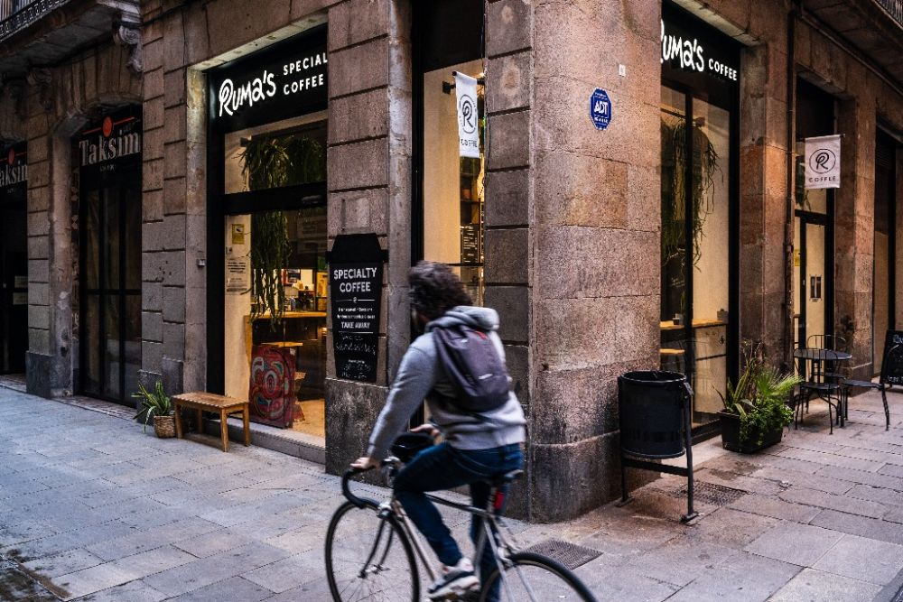 这是2020年11月23日拍摄的西班牙巴塞罗那市中心的一处重新开放的咖啡店。(新华社发 胡安·戈萨摄)