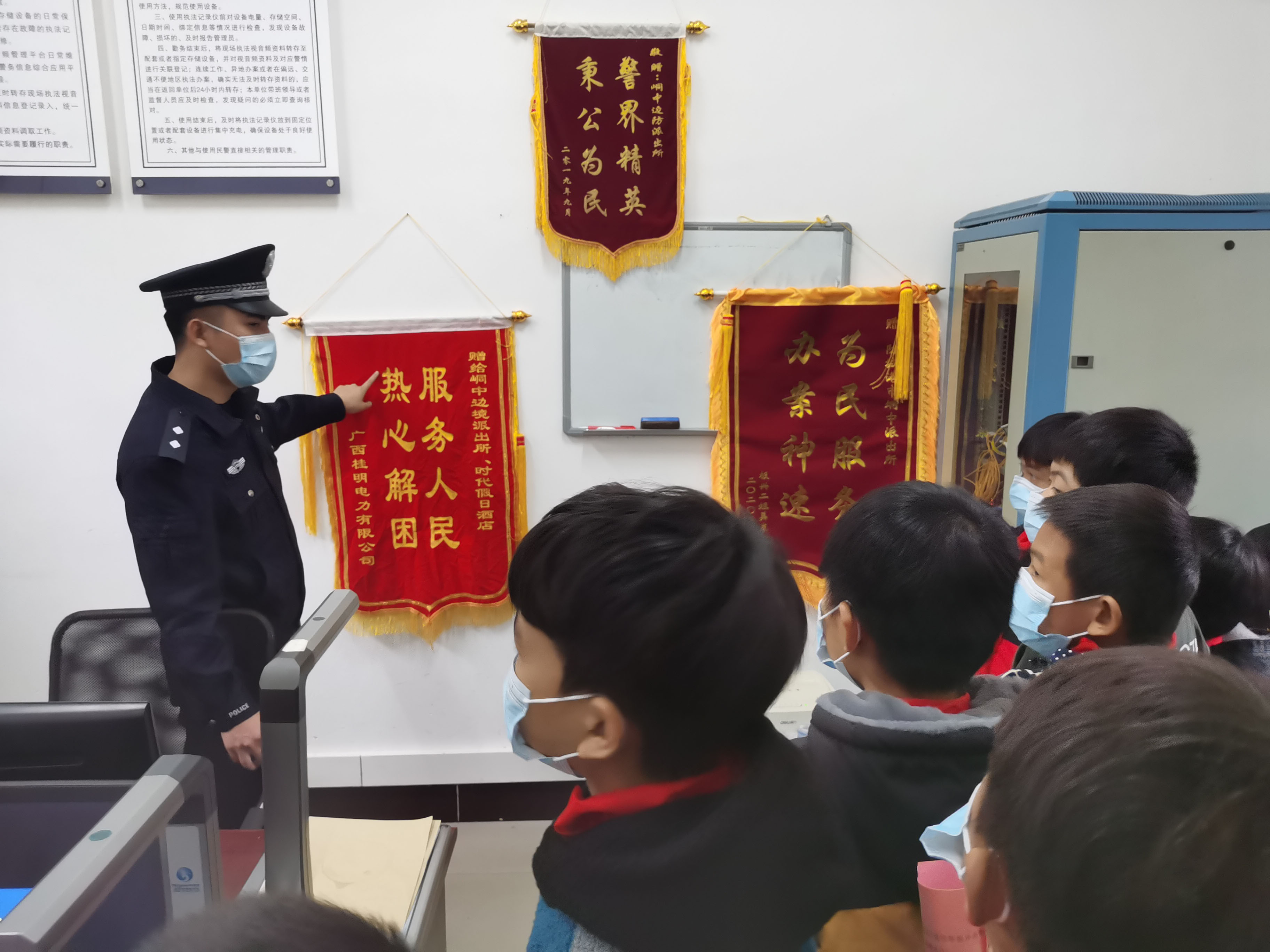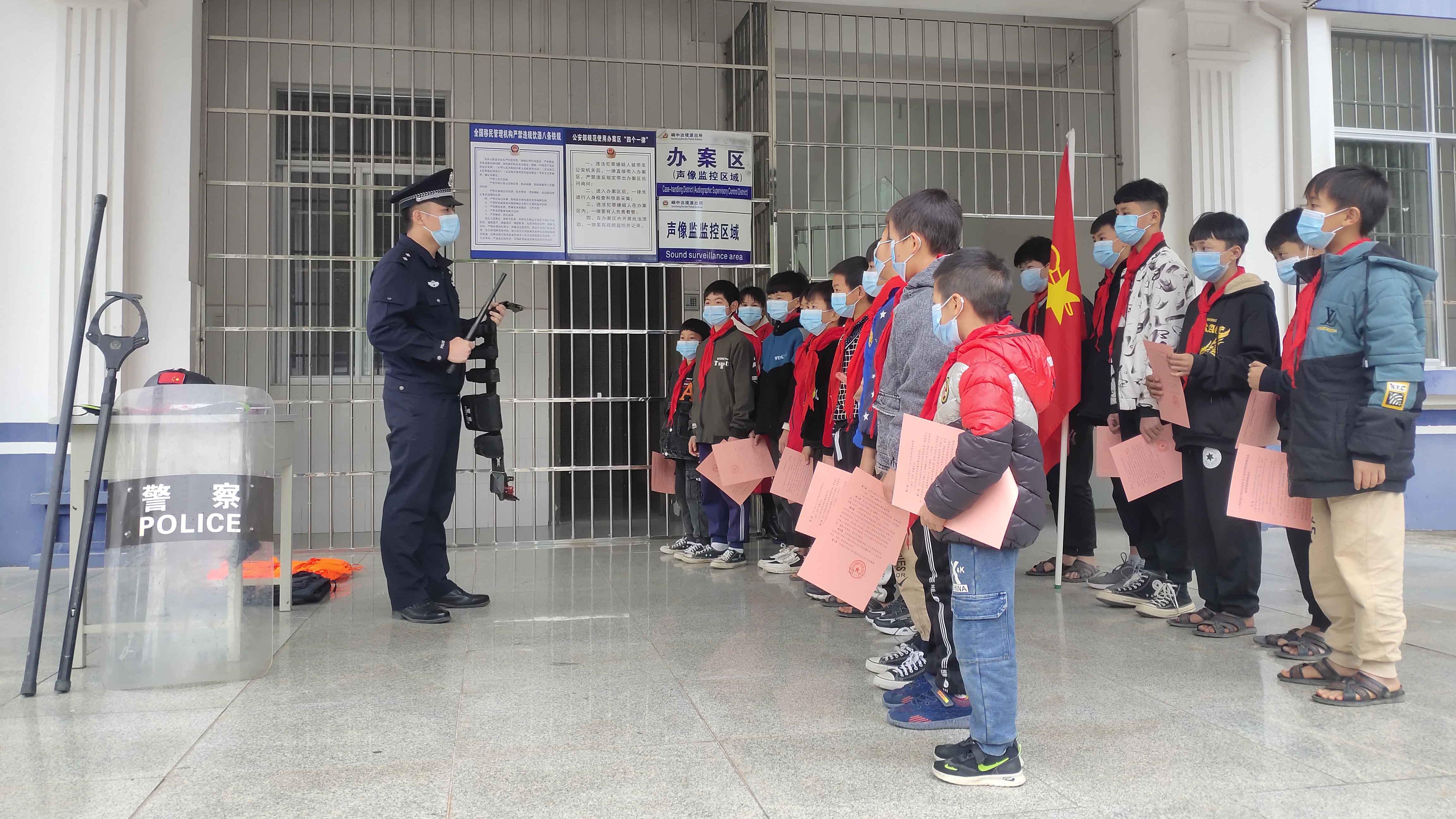 在我国首个“人民警察节”暨第35个110宣传日到来之际,防城港边境管理支队峒中边境派出所邀请辖区小学师生参加“喜迎警察节,牵手进警营”活动,近距离感受不一样的警营生活。
