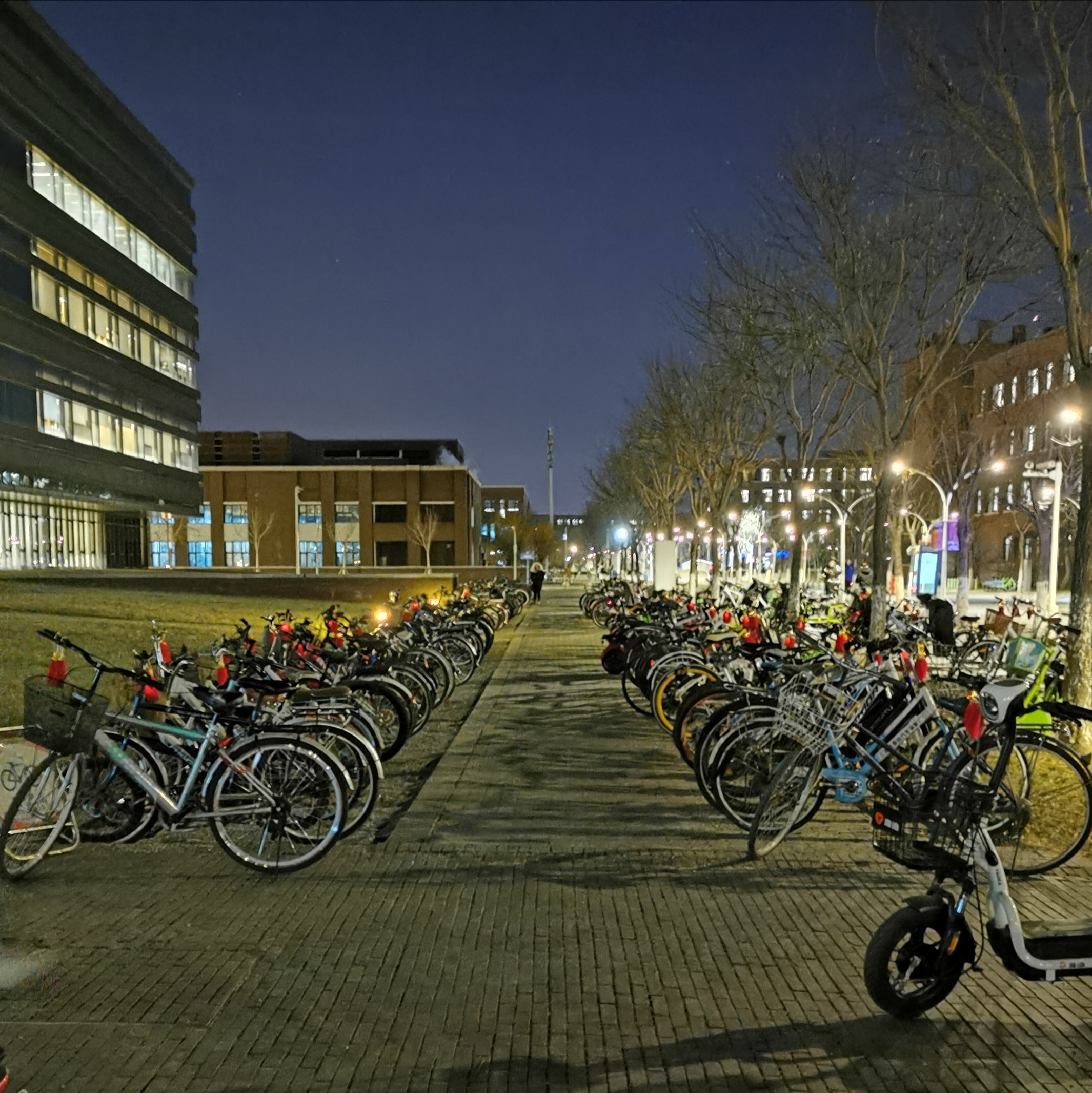 1月4日,天津大学校园内自行车上挂上了福袋。(图片由天津大学提供)