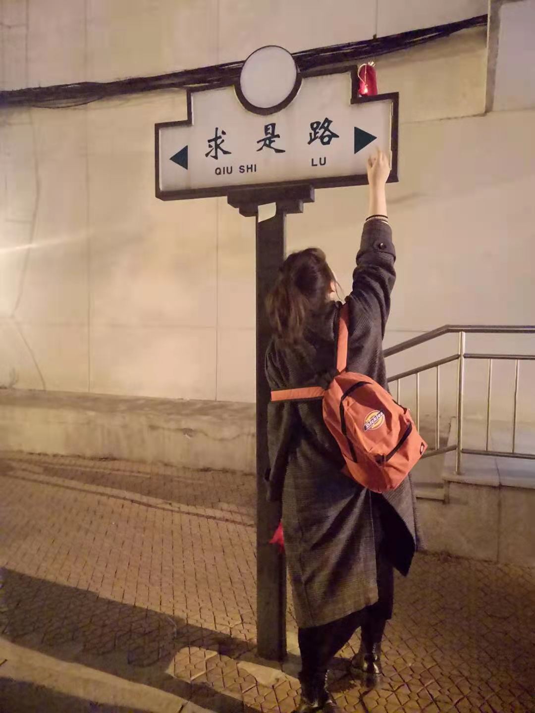 1月4日,天津大学学生在路牌上挂福袋。(图片由天津大学提供)