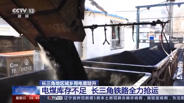 受寒潮天气影响,长三角地区城乡用电量陡升,安徽、江苏等地16家火电厂出现电煤告急,库存量不足。近日,中国铁路上海局集团有限公司配合太原、西安、呼和浩特等集团有限公司,紧急调运电煤,分批发往长三角火电厂。