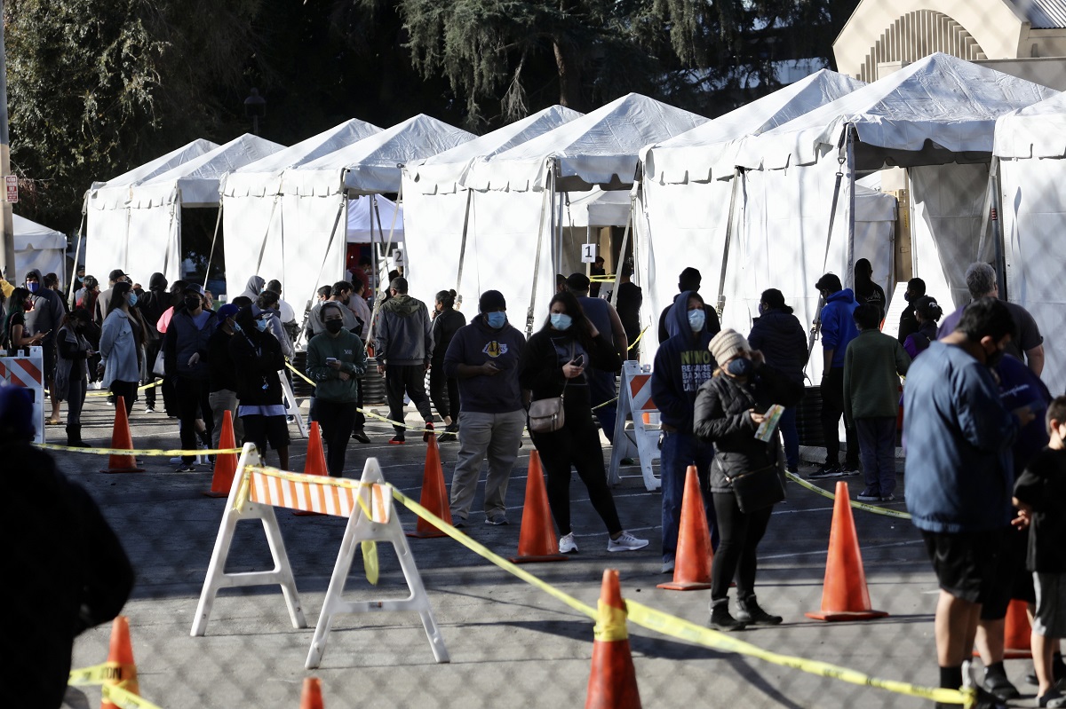 1月6日,在美国加州洛杉矶的一处新冠病毒检测站,民众排队等待检测。(新华社发)