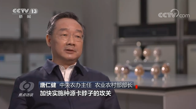 中央农办主任 农业农村部部长 唐仁健:加快实施种源卡脖子的攻关,力争缩小像玉米、大豆、生猪还有奶牛等这些方面跟国外的差距。推进种业创新,一项就是(建)种质资源库,(新的国家作物种质资源库)建成以后,保存的种质资源的份数能够达到150万份;第二个重点就是要抓好国家现代种业基地的建设。