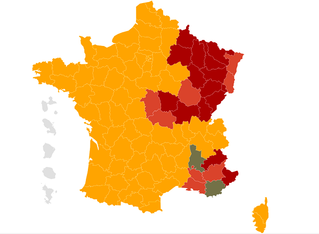 由于最近七天每十万人中的感染人数超过200人,从10日起,法国东北部和东南部8个省份的宵禁开始时间从20时提前到18时。加上之前已经采取同样措施的15个省份,目前共有23个省份将宵禁开始时间提前到了18时。东南部另外两个省份将从12日开始提前宵禁开始时间至18时。