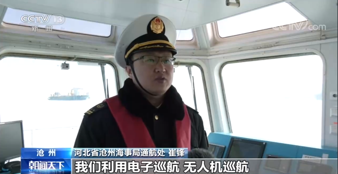 河北省沧州海事局通航处 崔锋:超强寒潮大风天气期间,我们利用电子巡航、无人机巡航、海上巡航等先进手段实时掌握辖区风力及海冰情况,及时发布气象预警信息,启动重点物资运输安全保障机制,调派拖轮在冰情严重的水域开展破冰,全力保障航道通畅。