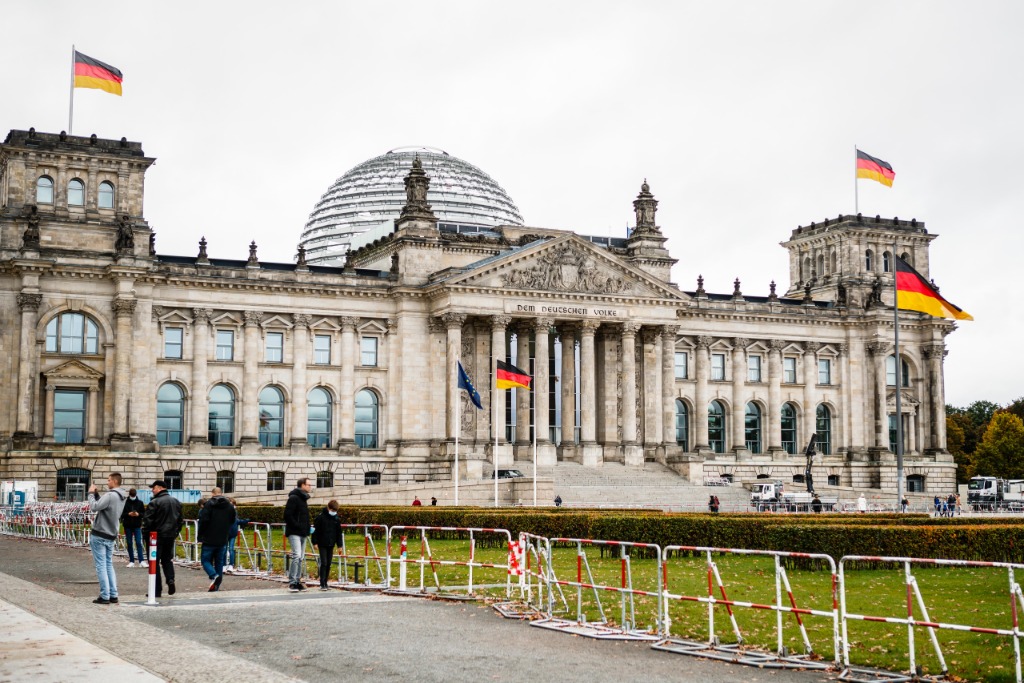 2020年10月15日,在德国首都柏林,行人经过德国议会大厦。新华社发