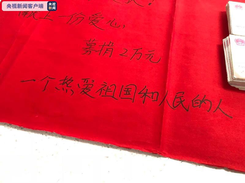 社区工作人员随后打开红纸包,发现里面包着两沓儿捆绑整齐的现金,应该是从银行刚刚取出的,社区工作人员铺开红纸,上面写着:向抗疫战线上的医疗工作者和志愿者致敬!献上一份爱心,募捐2万元。捐款人:一个热爱祖国和人民的人。等社区工作人员明白了这位阿姨的来意,急忙追出去,此时已不见她的身影……