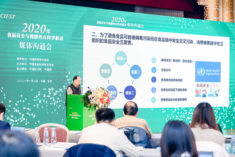 1月8日,由中国科学技术协会指导,中国食品科学技术学会主办的“2020年食品安全与健康热点科学解读媒体沟通会”在京召开。国家食品安全风险评估中心总顾问陈君石、北京工商大学校长孙宝国、广东省微生物研究所名誉所长吴清平3位中国工程院院士,以及多位权威专家分别对春节防疫、米酵菌酸、植物基食品等2020年食品安全与健康十大热点进行了科学解读,表达学术界观点。
