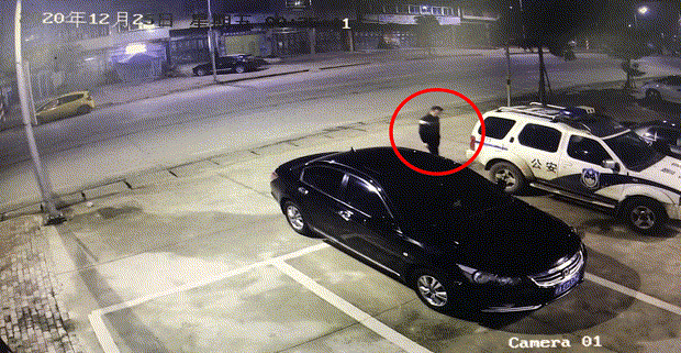 2020年12月25日凌晨,海南澄迈交警在进行路面巡查时,发现一名黑衣男子,在佩戴手套后,蹲在交警执勤警车尾部安装了一个黑色小盒,随即转身离开。之后民警从车尾部将盒子搜出,经鉴定为便捷式车载定位器。