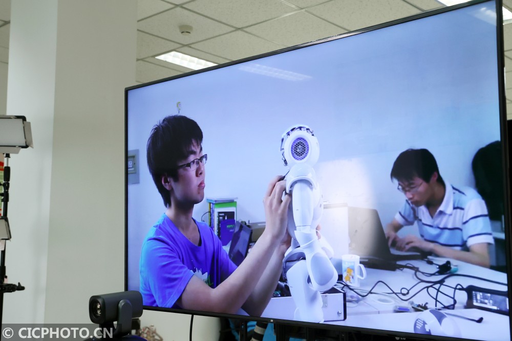 ↑2021年1月9日,在北京丰台云岗中国航天科工三院举办首届“航天杯”移动机器人AI创新技术挑战赛,图为演播室工作现场。CICPHOTO/封晓东 摄