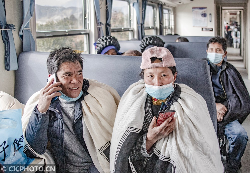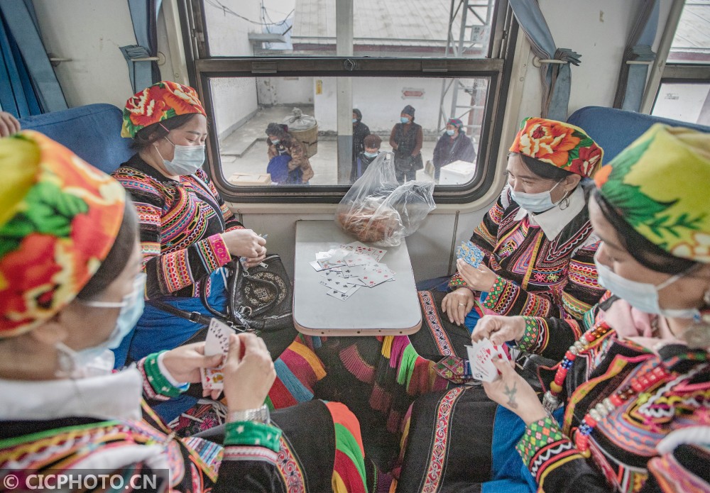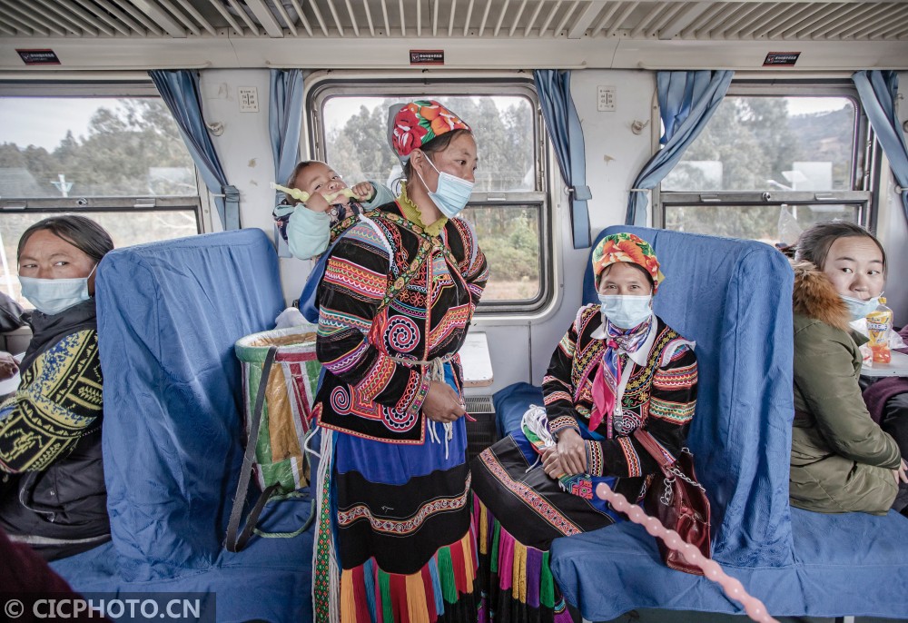 ↑人们乘坐成昆线上攀枝花市开往凉山彝族自治州越西县普雄镇的5634次列车。CICPHOTO/刘国兴 摄